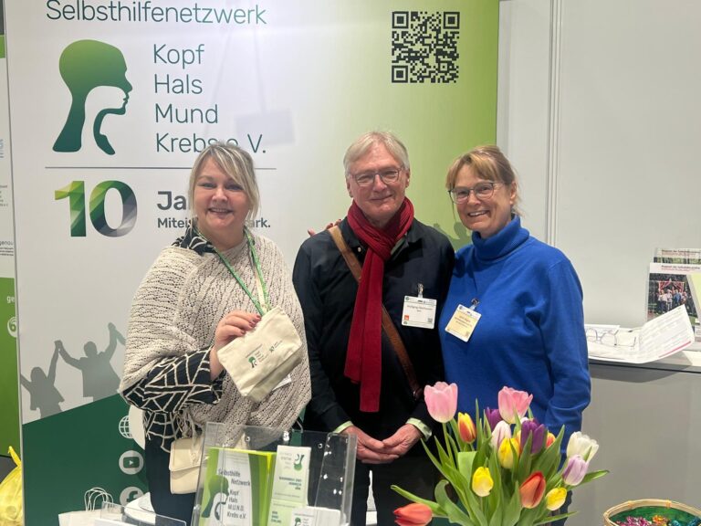 Auf den folgenden Seiten informieren wir Sie über unsere Selbsthilfeaktivitäten und stellen Informationen und Kontakte rund um das Thema Kopf-Hals-Tumoren und ihre Symptome, Diagnose, Therapie und Nachsorge zur Verfügung. Sie können außerdem unser kostenfreies Informationsmaterial herunterladen oder bestellen.