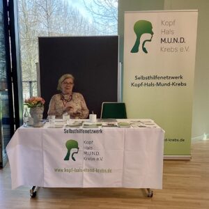 Rund 300 Besucherinnen und Besucher nutzten die Gelegenheit, sich über aktuelle Entwicklungen in der Krebsmedizin und unterstützende Angebote zu informieren. Unser Stand war dabei sehr gut besucht – es gab viele interessante Gespräche mit Betroffenen, Angehörigen und Fachleuten. Genau das ist es, wofür wir stehen: persönlicher Austausch auf Augenhöhe und die Möglichkeit, Fragen rund um Kopf-Hals-Mund-Krebserkrankungen in einem offenen Rahmen zu stellen.